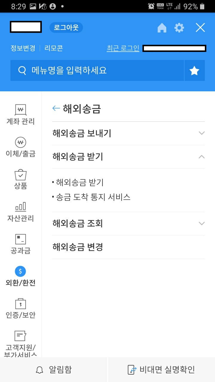 앱->외환/환전->해외송금->해외송금받기->해외송금 받기/조회 선택 하시면 됩니다.