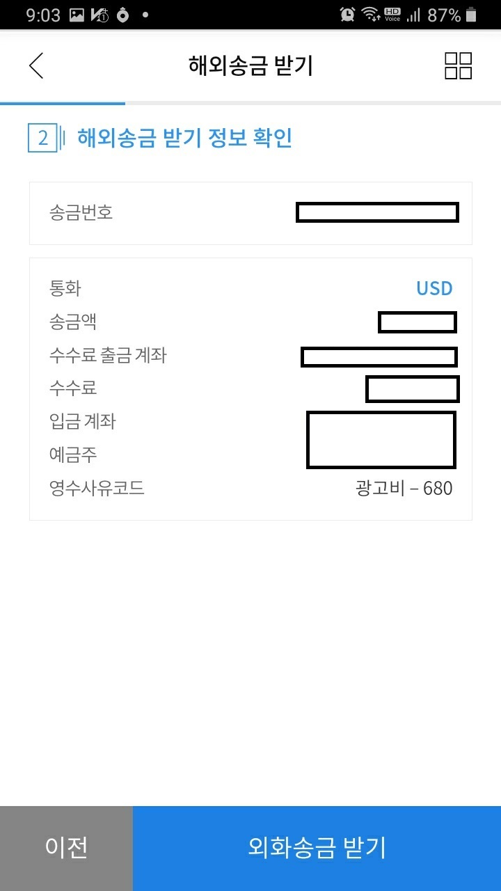 해외송금받기를 하면 계좌입금 입력에서 영수사유코드를 선택하게 됩니다. 저의 경우 "기타 서비스 거래", "사업서비스 또는 기타 잡용역", "광고비"를 선택하고 "다음"을 선택하시면 인증서로 확인 후 즉시 받기가 완료되며 통장으로 들어옵니다. 구급을 입금받는데 있어 어려운 부분 많은 분들이 아마 공감하실텐데 언제 들어오는지... 분명 구글 애드센스 입금메일은 받았는데 도대체가 들어올 생각을 안할때가 있는데 이렇게 문자 서비스와 직접 송금받기를 하시면 그러한 기다림이 조금은 덜 하지 않을까 생각됩니다. :) 좋은 정보였길 바랍니다.