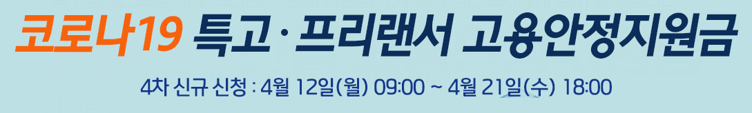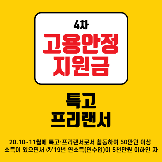 4차 진급 고용안정지원금 대상자는 특수형태근로종사자, 프리랜서 1,2,3차 긴급고용안정지원금 미수혜자 중 소득이 25% 이상 감소한 분이 대상자 입니다. (사업자등록증이 있는 특고/프리랜서는