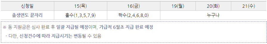 신규 신청자에 대한 모든 심사를 완료한 이후, 가급적 6월 초 일괄 지급 예정입니다