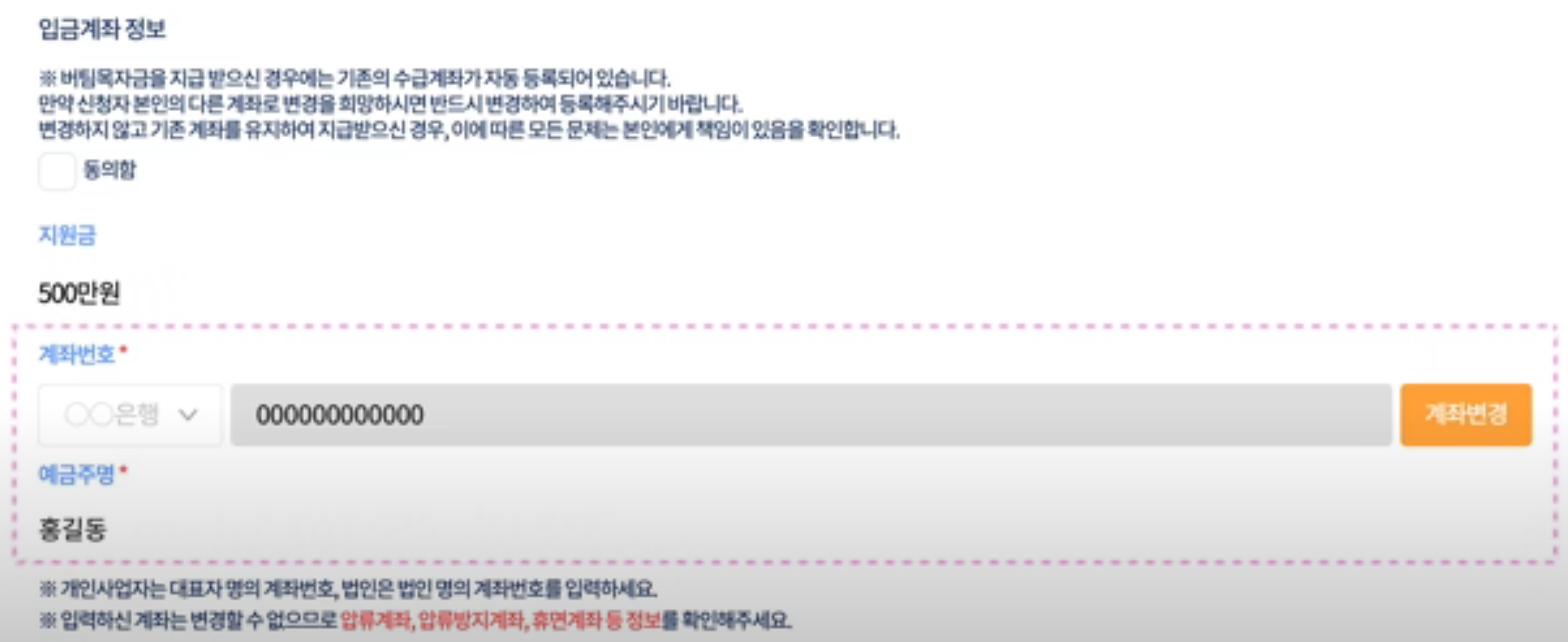 7) (타인명의 통장으로 신청하는 경우) 타인명의 계좌 이용 신청서, 계좌주인 신분증 사본